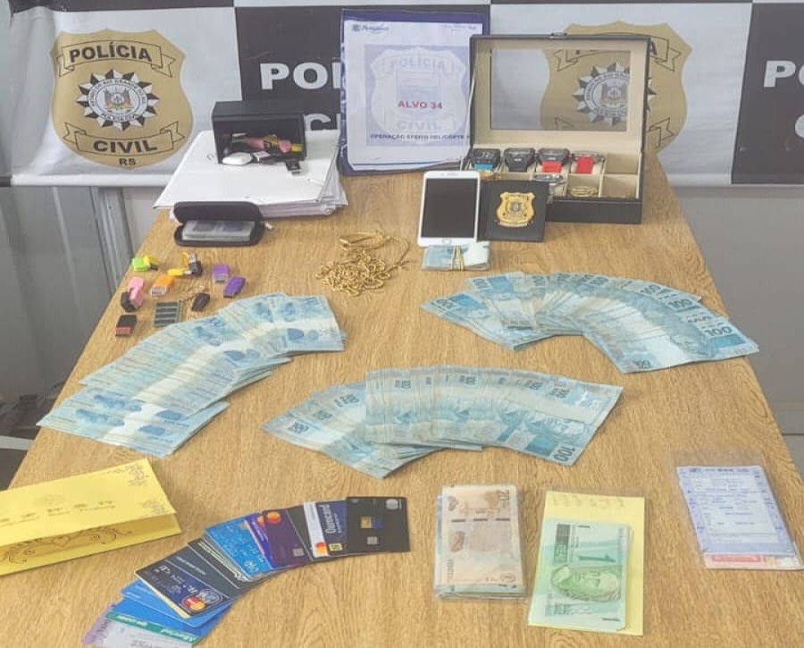 Nas buscas, foram apreendidos no interior do apartamento R$ 31 mil em dinheiro, celular, cartões de crédito, documentos, joias em ouro, relógios, com destaque para um Rolex avaliado em R$ 43 mil. Ninguém foi preso.