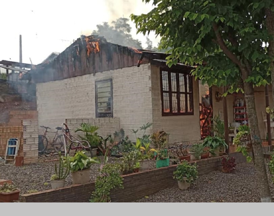 O fogo causou destruição a uma casa de alvenaria de 70 metros quadrados na tarde desta quarta-feira, dia 8 de novembro na localidade de Ponte Pratos – limite dos municípios de Horizontina e Tucunduva.
