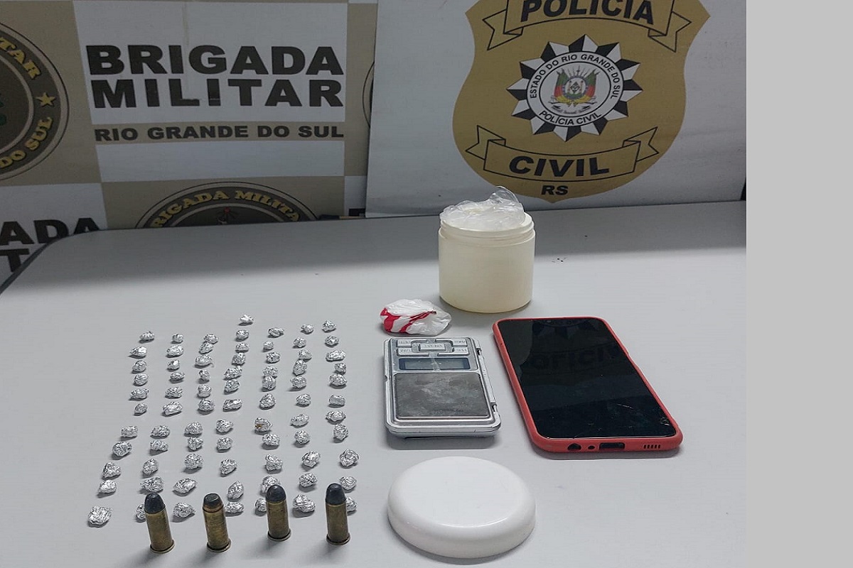 Na tarde desta terça-feira 21/11 policiais da Brigada Militar e policiais civis da Delegacia de Polícia de Horizontina, em ação conjunta, apreenderam em diligência no Bairro Jardim Vila Nova, materiais para embalar drogas, balança de precisão, munições, 78 porções de crack e 10 gramas de cocaína.
