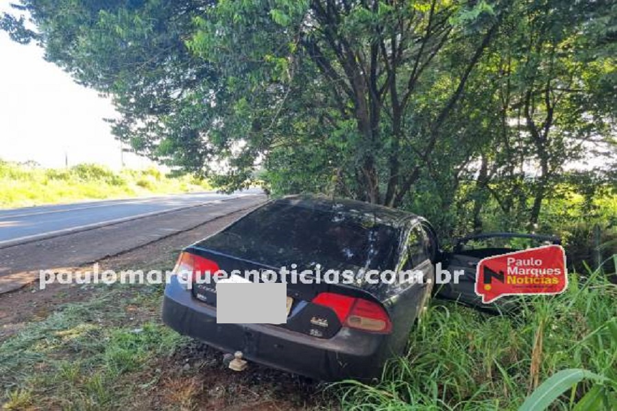 O veículo saiu a direita batendo contra o uma árvore na lateral da rodovia.