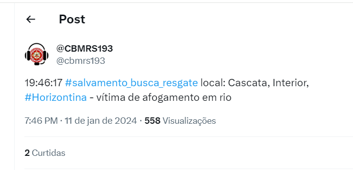 As equipes do CBMRS 193 – Corpo de Bombeiros Militar do Rio Grande do Sul, fazem buscas desde a noite desta quinta-feira dia 11, por um homem de 29 anos que pescava no rio Buricá e segundo relatos de pessoas que estavam no local, teria acidentalmente caído na forte correnteza do rio.