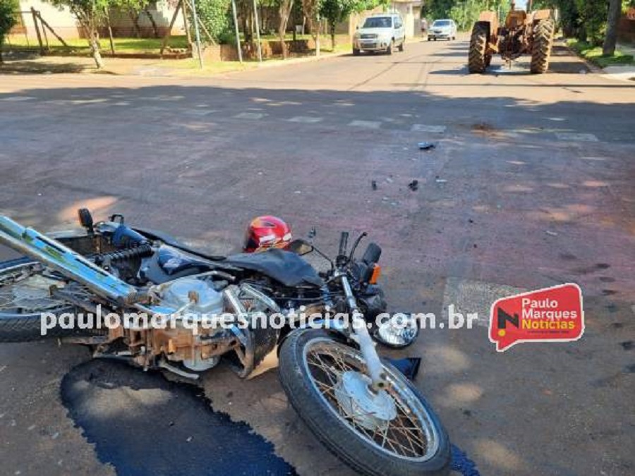 Um homem ficou ferido com certa gravidade, vítima de acidente de trânsito na tarde desta quinta-feira (1º), no centro de Três de Maio. Por volta das 15h30min, uma colisão transversal, envolveu uma moto emplacada em Três de Maio, e um trator de um morador da localidade de Bela Vista.