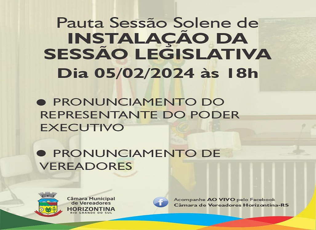 O ano legislativo 2024, último da atual legislatura será aberto na tarde/noite de hoje, 5 de fevereiro, com pronunciamento de instalação e seguido de Sessão Ordinária, sob a presidência do vereador Rafael Tiago Godoy. Os trabalhos terão início ás 18h com a instalação dos trabalhos e em seguida, ás 19h Sessão Ordinária com transmissão da Rádio Olinda FM.