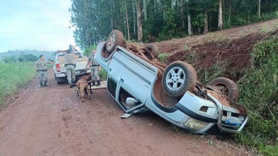 Policiais da Brigada Militar tentaram abordar uma caminhonete GM S10, que capotou em uma estrada de chão batido. O veículo foi recolhido pelo guincho, e os cigarros apreendidos.