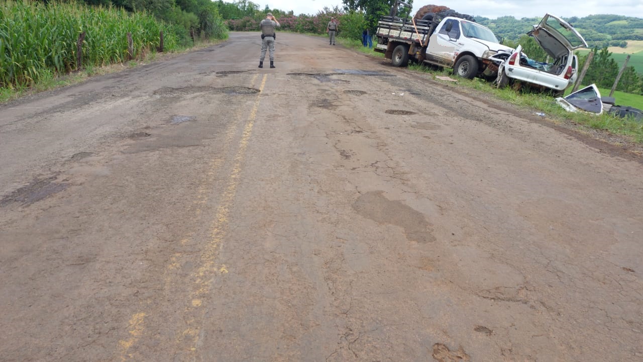 Veículos envolvidos na colisão frontal uma F350 de propriedade de uma revenda de pneus de Boa Vista do Buricá e um veículo GM Corsa onde estavam duas pessoas, ambas gravemente feridos. O casal residente em Horizontina.