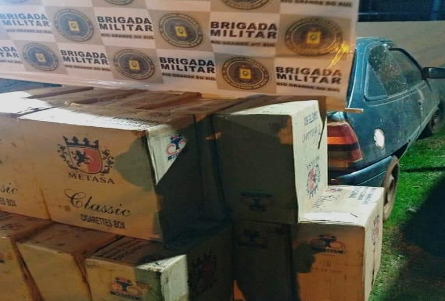 No veículo GM KADET foram localizadas 17 caixas de cigarros de origem estrangeira marca Classic, totalizando 850 PACOTES. Foi dada voz de prisão ao homem que é natural de Dr. Maurício Cardoso e posteriormente encaminhado a Policia Federal de Santo Ângelo.