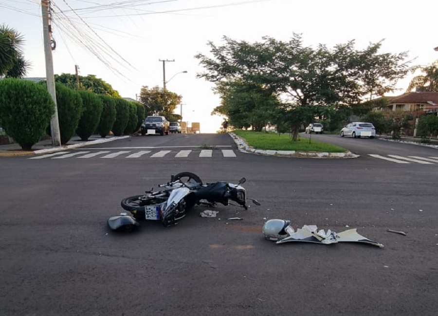 A colisão em um cruzamento envolveu um veículo de passeio – e uma moto.