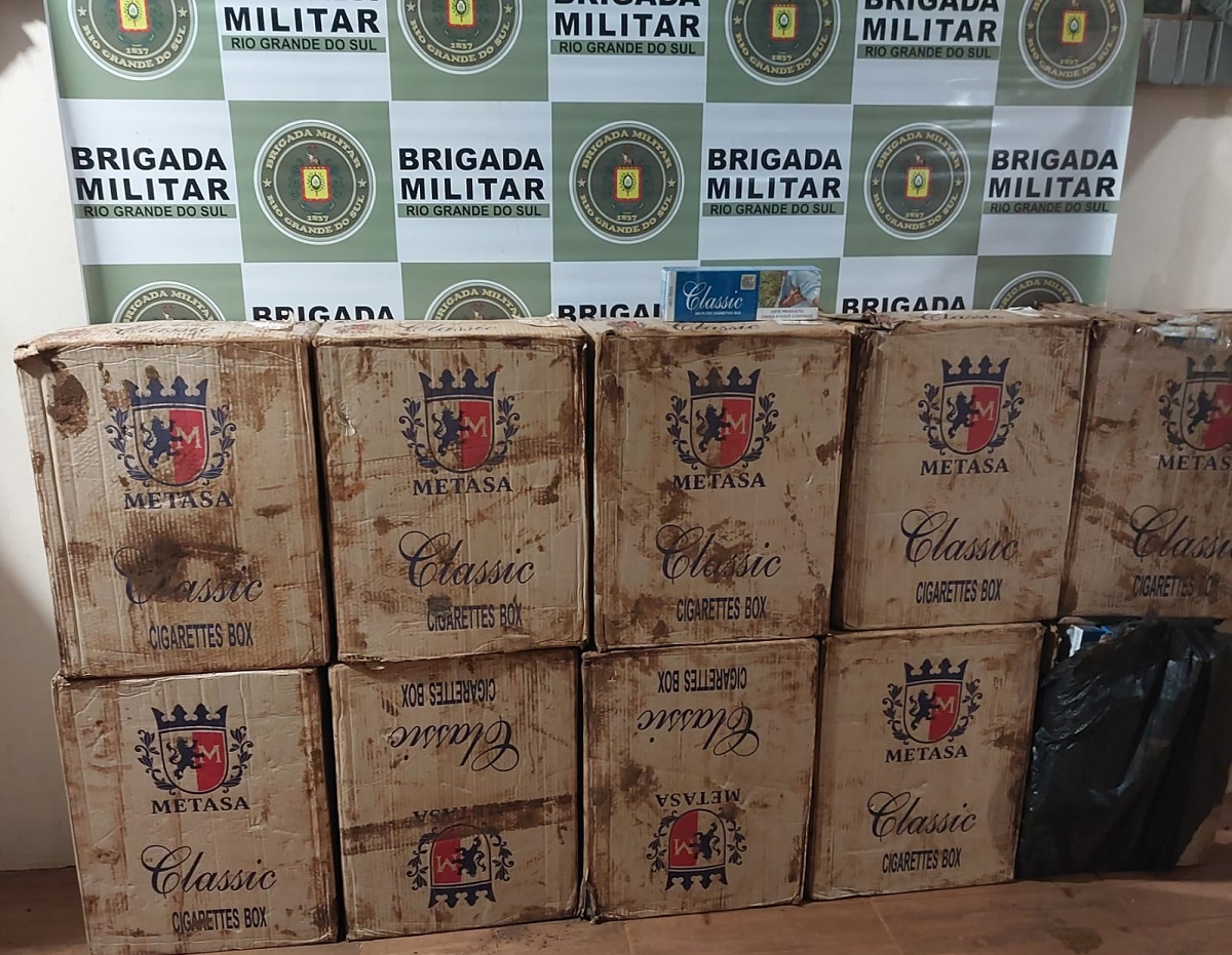 Abordado o motorista e dentro do veículo localizado 10 caixas de cigarros de origem paraguaia. Foi dada voz de prisão ao autor e diante dos fatos o veículo Citröen Picasso ficou apreendido na sede do 4 BPAF e o homem apresentado juntamente com o material apreendido na Polícia Federal de Santo Ângelo.