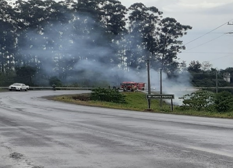 O Corpo de Bombeiros de Horizontina – CBMRS 193, atendeu por volta das 9h45min saída de pista com incêndio em veículo na localidade de Ponte Pratos, limite dos municípios de Horizontina e Tucunduva.