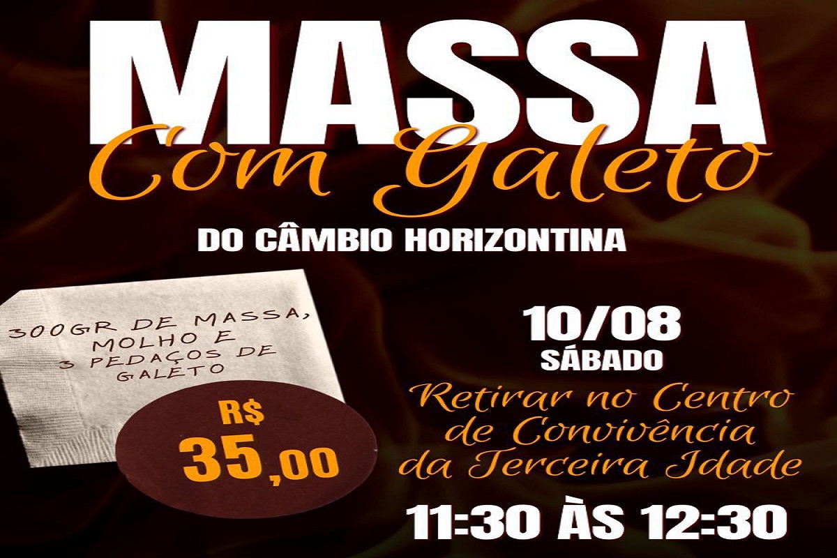 O cardápio será massa, molho e galeto no valor de R$ 35,00 o cartão. Os adquirentes retiram no local e levam para almoçar em sua casa.
