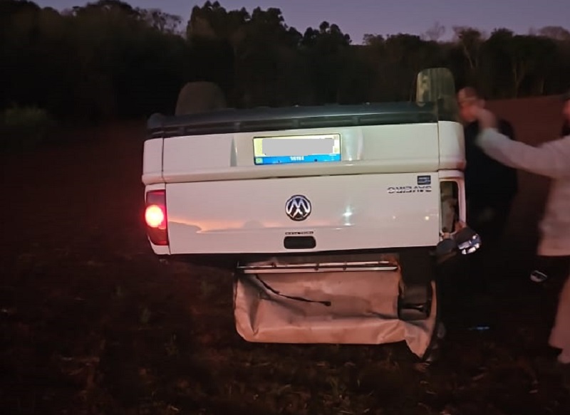Uma saída de pista seguida de capotagem de uma caminhonete VW Saveiro, deixou dois homens com ferimentos no início da noite deste sábado, 24 de agosto, na ERS 305 – Área Industrial de Horizontina, próximo a Trans Di Canali.
