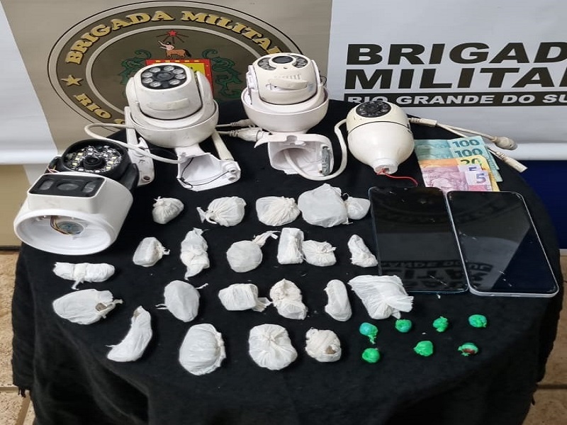 No local foram apreendidos porções de drogas, como maconha e cocaína, celulares, dinheiro e câmeras de segurança que eram utilizadas para acompanhar a movimentação da rua.
