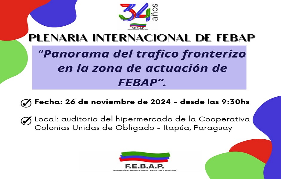 No próximo dia 26 as Febap’s do Brasil, Argentina e Paraguai farão um importante evento para tratar dos assuntos pertinentes ao trânsito Fronteiriço. Com o tema “Panorama del trafico fronterizo em la zona de atuación de FEBAP”, a plenária vai acontecer em Obligado, Itapúa, no Paraguai, com a presença dos três presidentes da entidade e com os parlamentares do Mercosul – o PARLASUL.