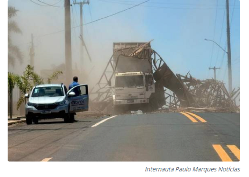 O acidente com os danos materiais de grande monta ocorreu nesta manhã. Um caminhão caçamba, com o compartimento de carga acionado (erguido) atingiu a estrutura do monumento.