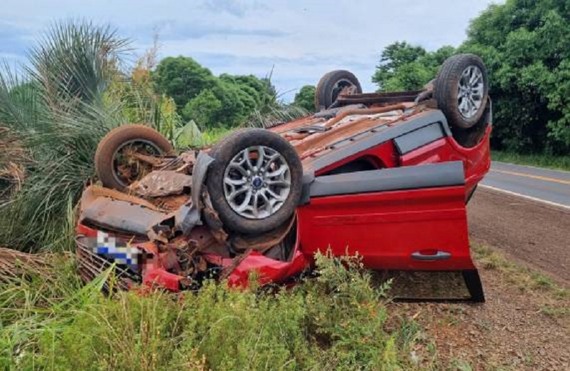 Uma mulher de 40 anos, ficou ferida após capotar a caminhoneta Eco Sport que conduzia na BR-472, no final da tarde desta segunda-feira (25). O acidente aconteceu no trajeto entre o trevo de acesso a cidade e o trevo da localidade de Bela Vista.