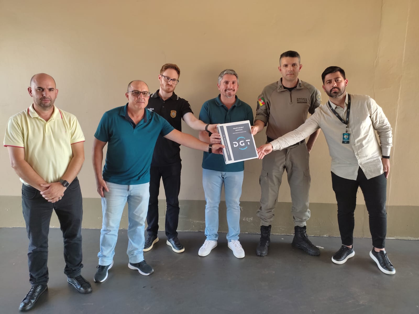 Prestigiaram o ato e usaram da palavra o Diretor de Segurança Elton Brüning, Prefeito Jones Cunha, Tenente Cássio Horazy da Brigada Militar, Delegado de Polícia Rodrigo Régis da Silva e o gerente da Projetos da Empresa DGT Marcelo Oliveira.