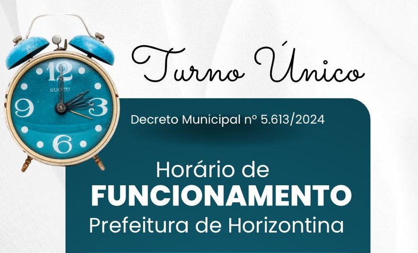 Através de Decreto o Prefeito Municipal de Horizontina Jones Cunha, estabeleceu jornada especial de trabalho, com Turno Único nos dias úteis até dia 10 de janeiro de 2025.