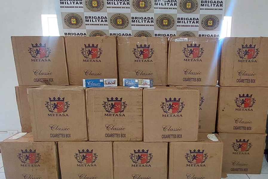 Durante patrulhamento rural na localidade de Nova Brasília, interior de Doutor Maurício Cardoso, policiais militares localizaram 37 caixas de cigarro marca Classic, de nacionalidade estrangeira, escondidos na mata.