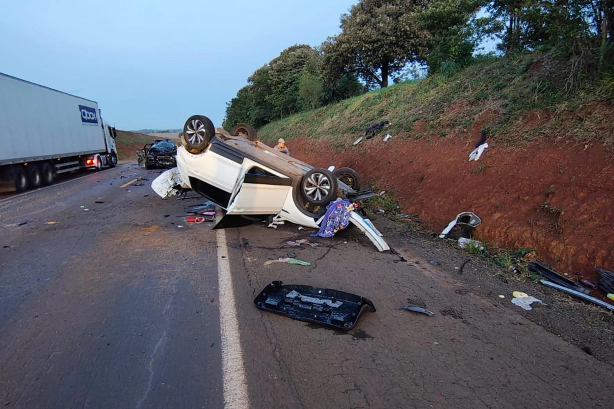 Segundo a Polícia Rodoviária Federal (PRF), o acidente envolveu dois carros e um caminhão. Os veículos iam no mesmo sentido, de Santo Antônio das Missões para São Borja, quando uma VW T-Cross bateu na traseira de um caminhão depois de ser atingida por uma GM Tracker. Com o impacto, a T-Cross capotou sobre a rodovia.