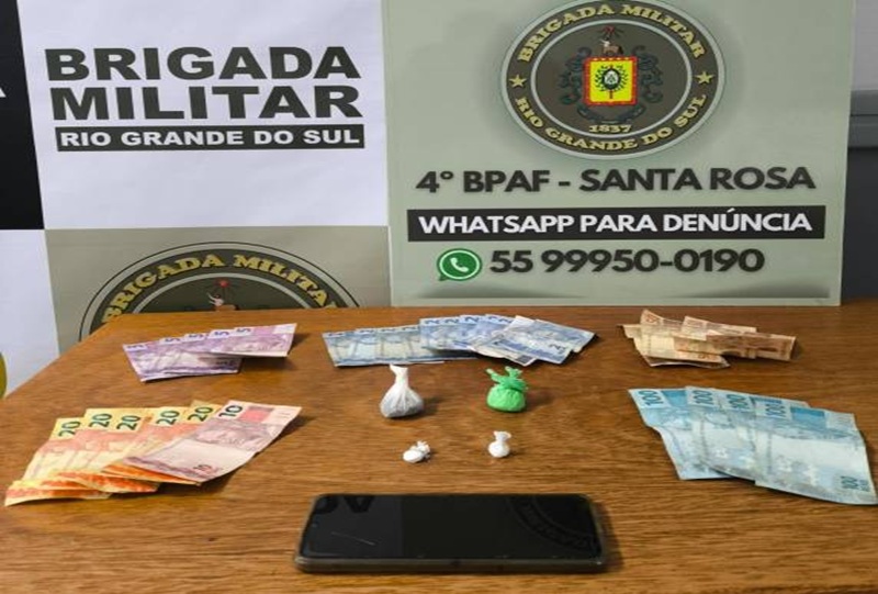 A ação foi realizada por equipes da Brigada Militar durante patrulhamento de rotina. Durante a abordagem, os policiais encontraram com o suspeito uma quantia, (dinheiro) um telefone celular e entorpecentes.