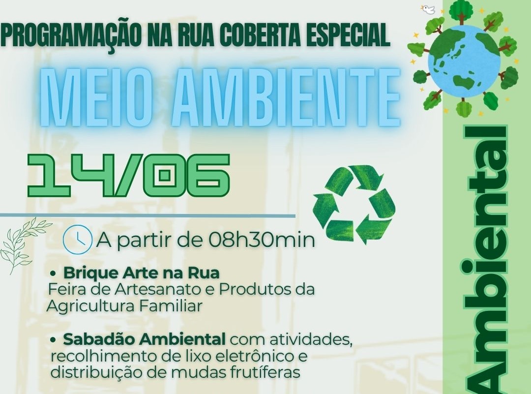 O destaque do sábado, dia 14, será o Sabadão Ambiental, que acontecerá das 8h às 12h na Rua Coberta, em frente à Prefeitura. Este evento contará com diversas atividades: Brique Arte na Rua; Uma feira de artesanato com produtos criativos e sustentáveis; Feira da Agricultura Familiar; Venda de hortifrutigranjeiros e produtos artesanais como pães, bolachas, doces e salgados caseiros; Música ao Vivo um entretenimento musical para animar o público; Distribuição de Mudas: Serão distribuídas mudas de árvores frutíferas e nativas para aqueles que levarem seus resíduos eletroeletrônicos para descarte no local.