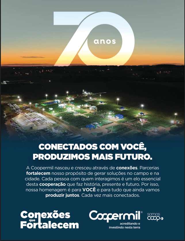 “Celebrar 70 anos é honrar o legado dos fundadores e reafirmar nossa missão de gerar soluções no agronegócio com inovação, eficiência e sustentabilidade. O futuro da Coopermil será construído com a mesma confiança que marcou sua origem”.