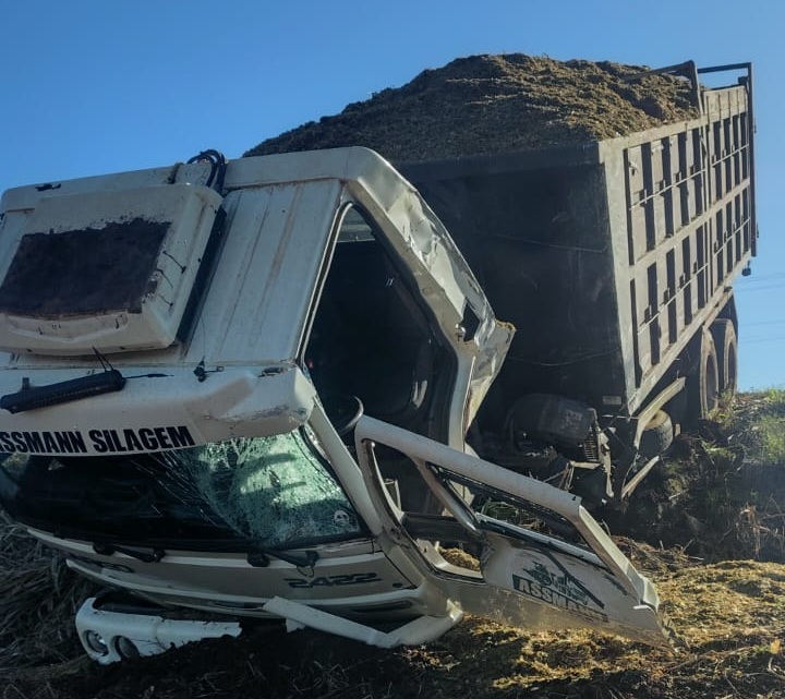 Mais um trágico acidente de trânsito ocorreu por volta das 9h desta quinta-feira (28) na BR-472. Foi próximo ao trevo de acesso ao município de Santo Cristo. O fato envolveu dois caminhões, um transportador de ração e outro carregado com silagem.