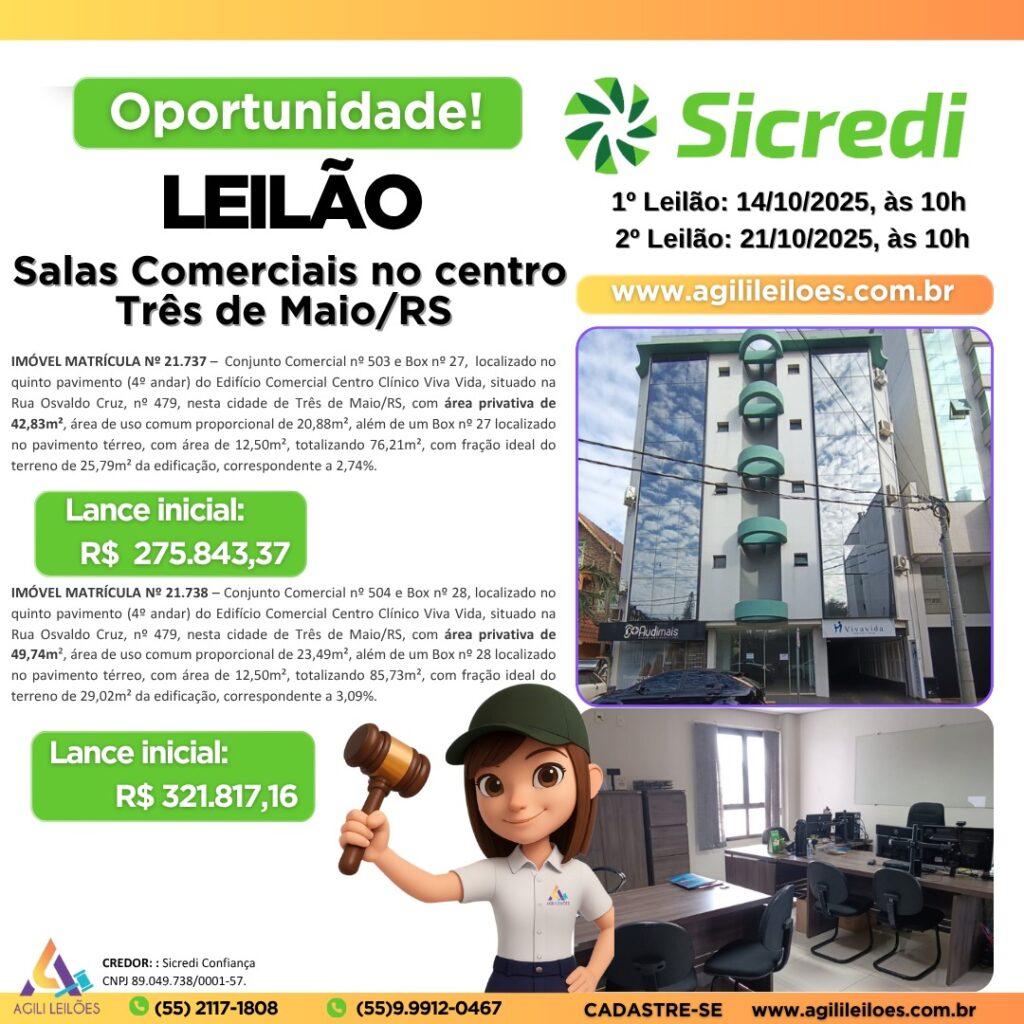 LEILÃO – Salas comerciais em Três de Maio – RS.