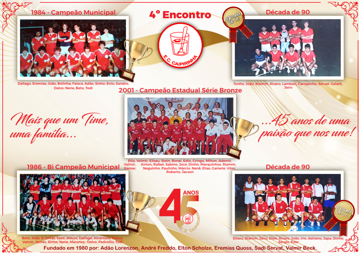 Ao longo destes 45 anos, o E. C. Caipirinha construiu um legado de amizade, união e paixão pelo futsal. Mais que um time, somos uma família, unida pelos laços do esporte e da amizade. Que esta história continue a inspirar novas gerações e a celebrar o espírito esportivo que nos move.