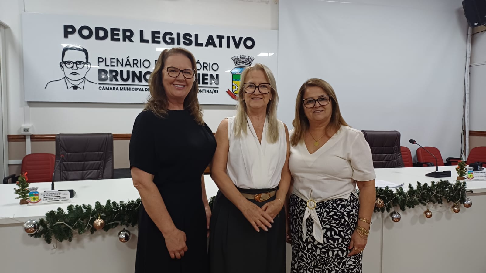 As eleições de 2024 já haviam sinalizado a mudança, elegendo pela primeira vez em 70 anos, três mulheres para a Câmara: Zuleica Wehner e Rosane Santos, ambas do União Brasil, e Ivete Callegaro da Silva do PDT. As três vereadoras estão atuando neste ano legislativo e, na sessão plenária de 1º de dezembro, protagonizaram outro momento histórico.
