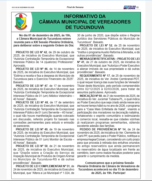 Câmara Municipal de Vereadores de Tucunduva – Informativo Digital