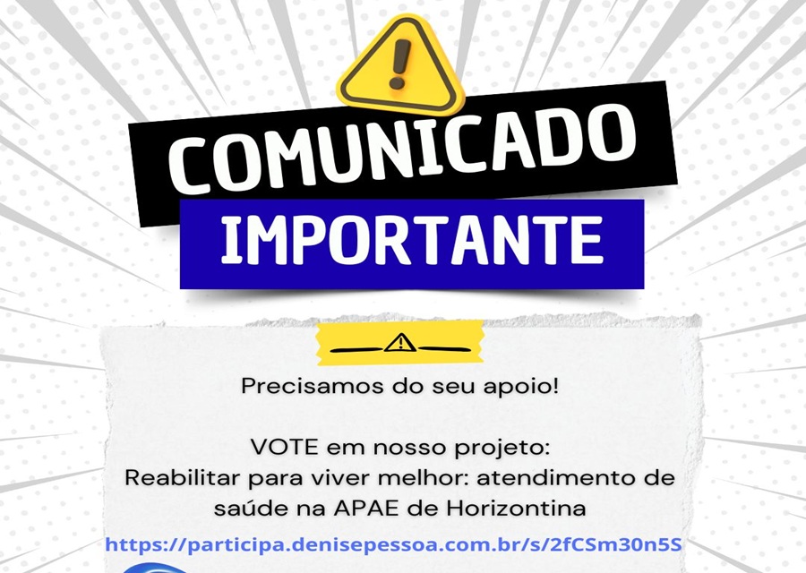 Convidamos você a votar no projeto da APAE de Horizontina e a compartilhar essa mensagem com seus amigos e familiares. Cada voto é um passo a mais para garantir um atendimento de saúde de qualidade para quem precisa.