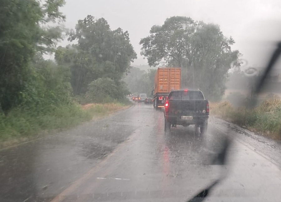 Pancadas de chuva acompanhadas de rajadas de vento relativamente fortes atingiram a região no início da tarde desta quarta-feira, dia 28, provocando transtornos no trânsito da rodovia ERS-342.