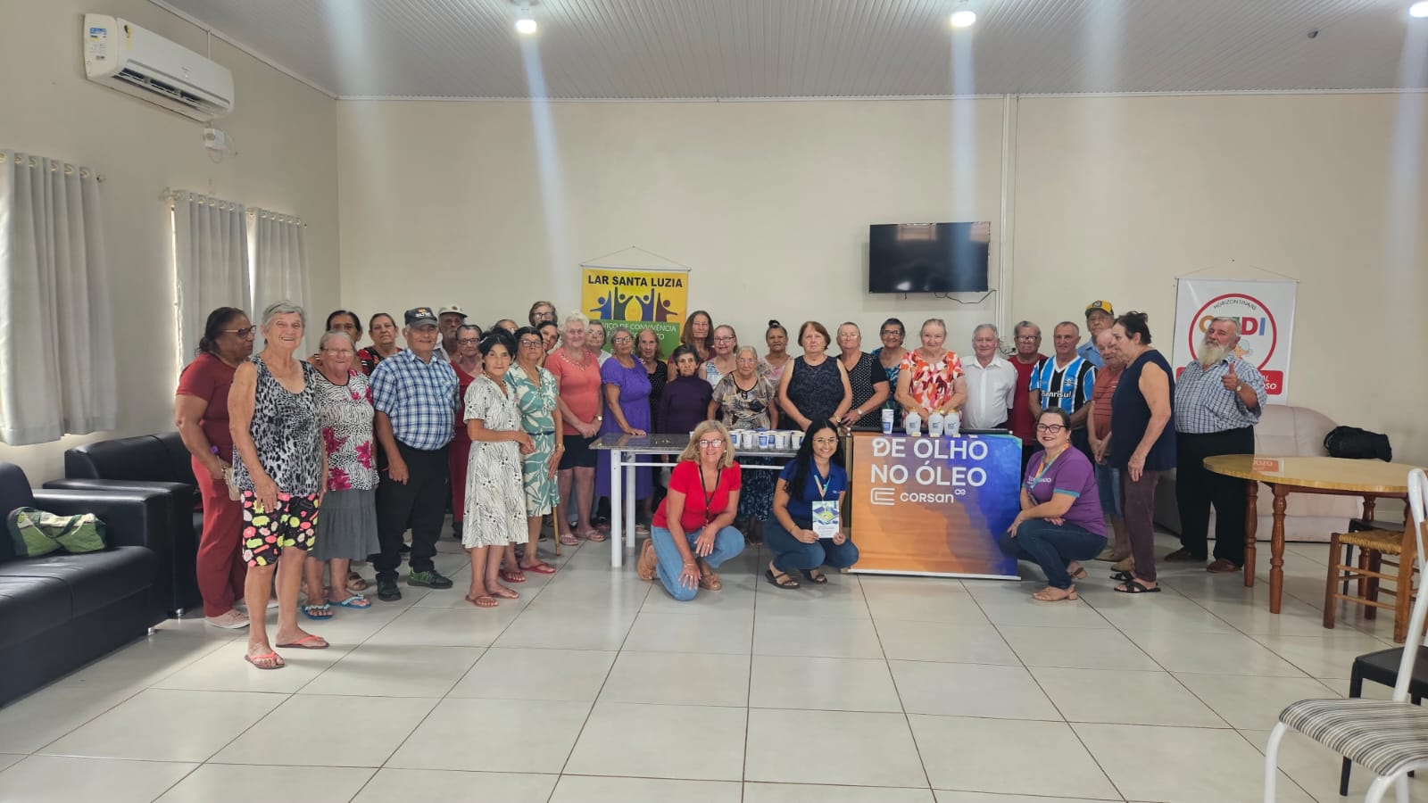 A Corsan realizou, na terça-feira (3), uma ação do projeto De Olho no Óleo no Centro de Convivência Santa Luzia, no bairro Bela União, em Horizontina. A atividade reuniu cerca de 40 moradores da comunidade e resultou na arrecadação de aproximadamente 20 litros de óleo de cozinha usado, garantindo a destinação correta desse resíduo.