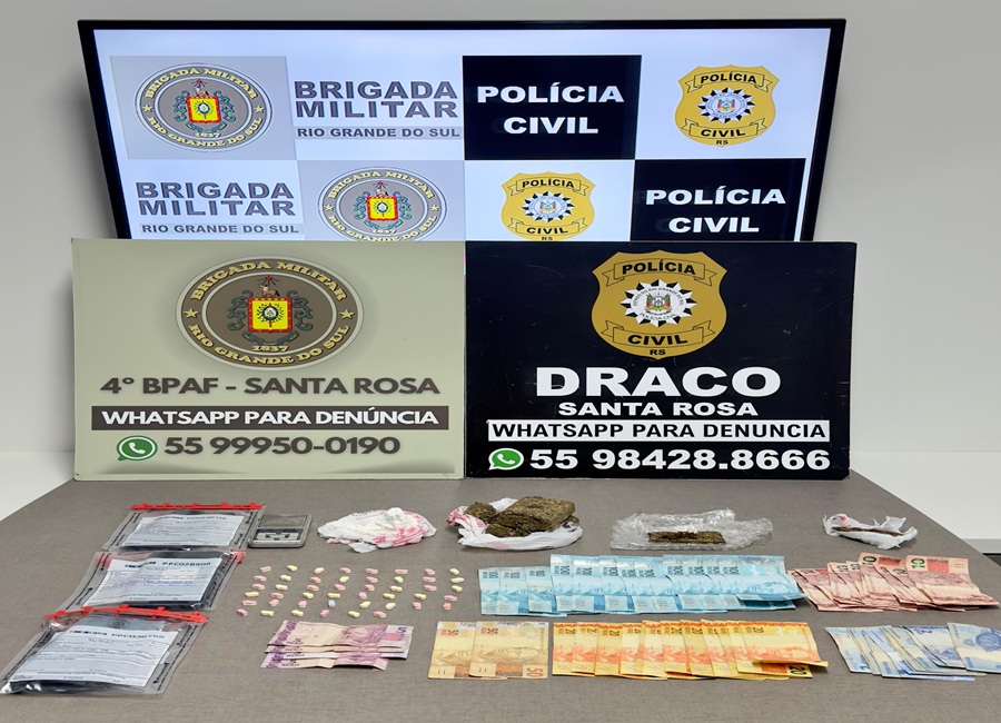 Uma operação conjunta entre a Brigada Militar e a Polícia Civil resultou em prisões e apreensão de entorpecentes na noite de quinta-feira (5), no município de Santa Rosa.