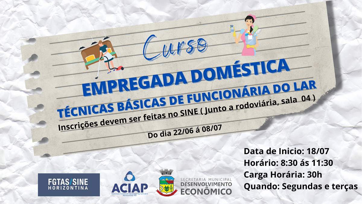 Será voltado as funcionárias do Lar, legalmente reconhecidas como Empregadas Domésticas, o primeiro curso de capacitação do Programa Profissionalizar, iniciativa do Governo Municipal através da Secretaria de Desenvolvimento Econômico, Desenvolvimento Social, FGTAS Sine, Departamento de Políticas da Mulher e com apoio da ACIAP.