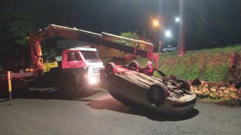 De acordo com o registro policial, um veículo VW Voyage, capotou na Avenida Palmeira das Missões, nas proximidades da Capela B do Memorial Zillmer, caindo da pista mais alta para a pista mais baixa da avenida.
