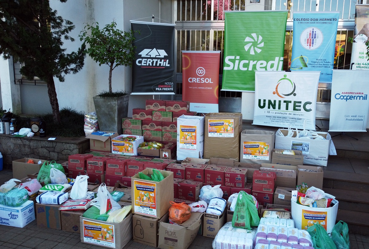 Também foi realizada a entrega de três toneladas de alimentos aos Lares do Idoso e ao Hospital São Vicente de Paulo. Esta ação foi desenvolvida durante o mês de julho, quando foi disponibilizado, em cada uma das cooperativas, uma caixa para arrecadação de alimentos.