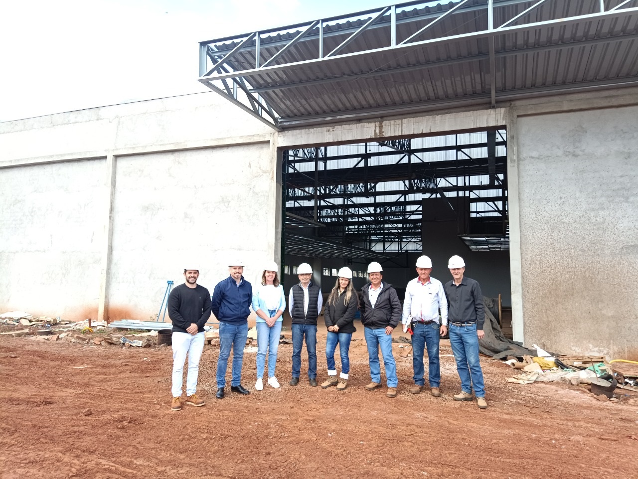 O Prefeito Municipal Jones Cunha, vice-prefeita Zuleica Wehner e o Secretário de Planejamento e Gestão de Projetos Fernando Henrique Bins, foram recebidos no canteiro de obras do futuro Memorial da Evolução Agrícola de Horizontina, em obras entre as quadras das ruas Dahne de Abreu, Balduino Schneider, Duque de Caxias e Arnoldo Schneider, antigas instalações da Fábrica I da SLC.