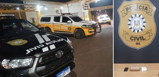 Na revista foi localizado um tijolo de crack de um quilo e 0,25 gramas, 490 gramas de cocaína e um aparelho celular, objetos que foram apreendidos, sendo a mulher presa em flagrante. As informações são da Polícia Civil do RS, 22ª Região Policial.