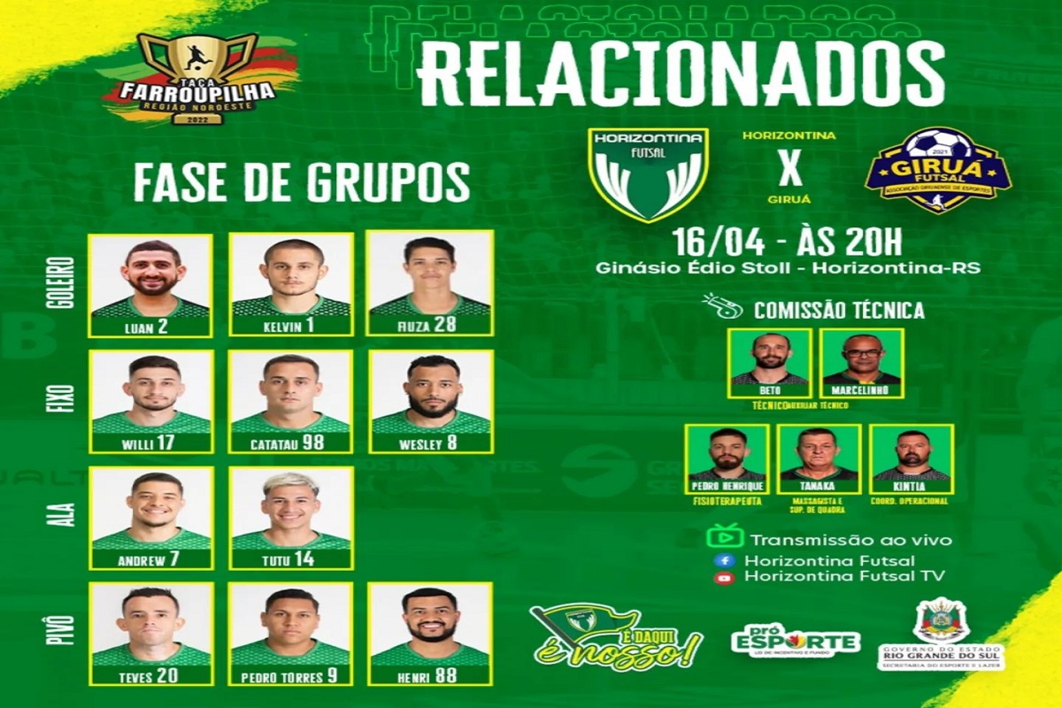 Nesta noite de sábado, dia 16, tem a 4ª rodada da Taça Farroupilha de Futsal, região noroeste. Horizontina abre o returno recebendo a equipe do Giruá Futsal.