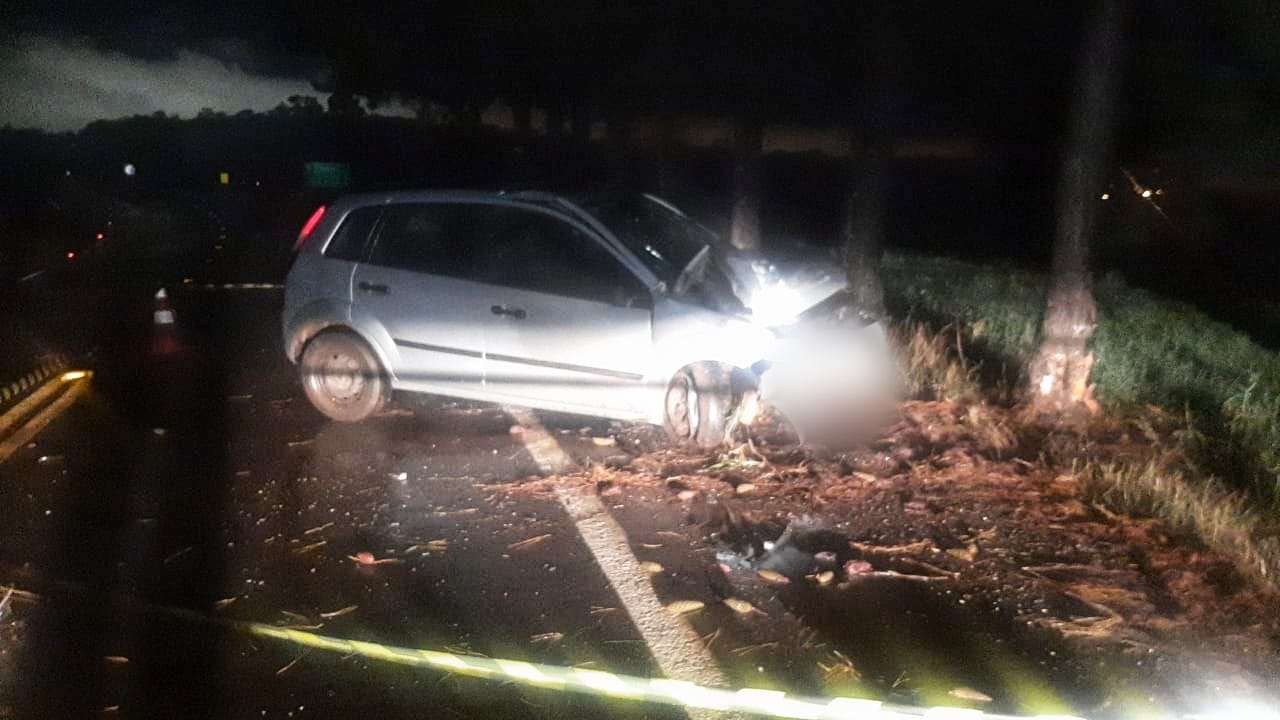 O Veículo Ford Fiesta, placa de Tucunduva, se chocou contra uma árvore. Condutor teve a morte constatada no local pelo SAMU e Bombeiros.