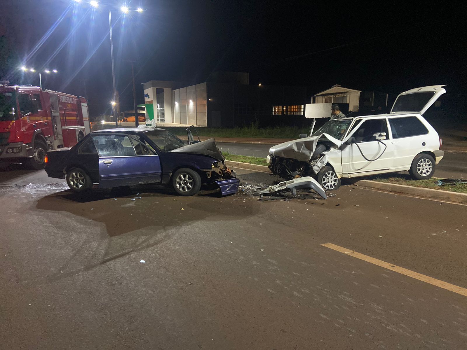 Um dos veículos ficou sobre o canteiro da avenida e outro na pista de rolamento, ambos com danos materiais de grande monta.