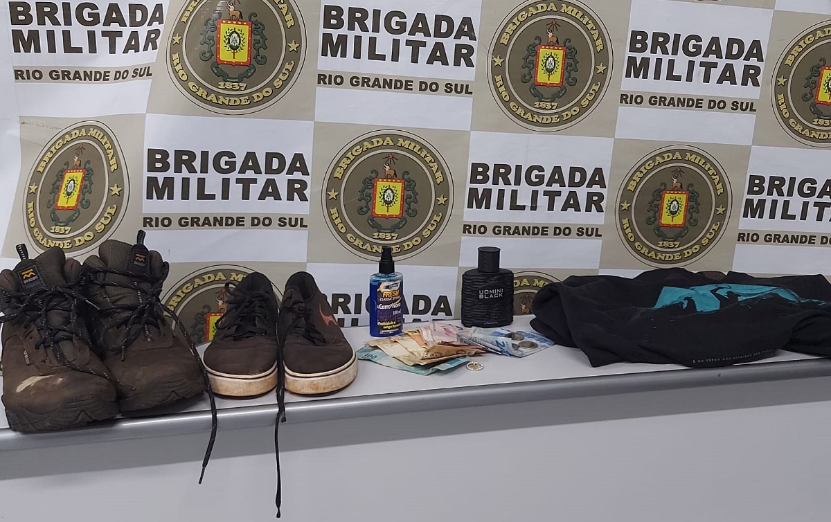 Foi localizado com o autor dinheiro, um pingente e demais objetos furtados. Diante do Flagrante Delito o autor foi conduzido até a DP local e após os procedimentos de lavratura, foi recolhido ao sistema prisional – Presídio Estadual de Santa Rosa.