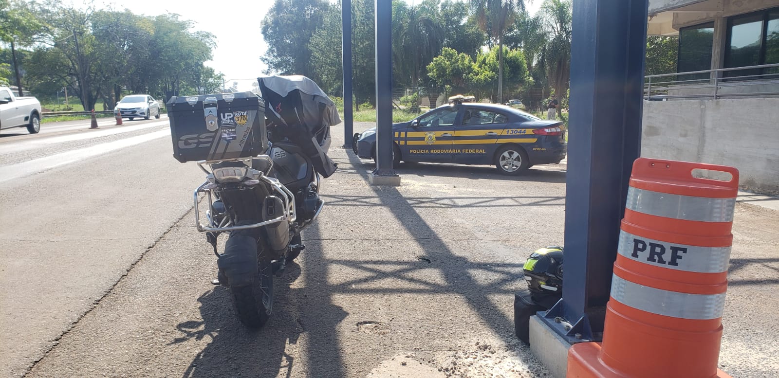 Em policiamento ostensivo na rodovia, policiais rodoviários federais visualizaram uma motocicleta transitando com a placa totalmente escondida. Procedida a abordagem, os PRFs verificaram que o veículo portava dispositivo que, acionado manualmente pelo condutor, escondia a placa, fazendo com que os caracteres ficassem voltados para o solo, para desta forma escapar das fiscalizações, principalmente por radar.