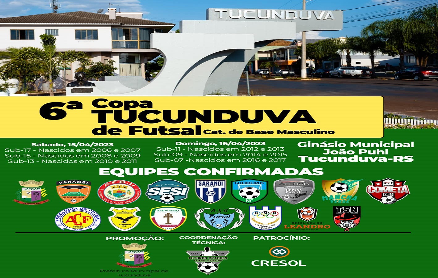 O evento é uma realização da Prefeitura Municipal de Tucunduva com a Coordenação Técnica e Organização da Futuros Craques Eventos Esportivos.