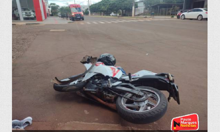 A mulher pilotava uma moto Honda CBR, no sentido bairro-centro e colidiu na lateral dianteira de uma caminhonete furgão Fiat Strada, que seguida logo a frente.