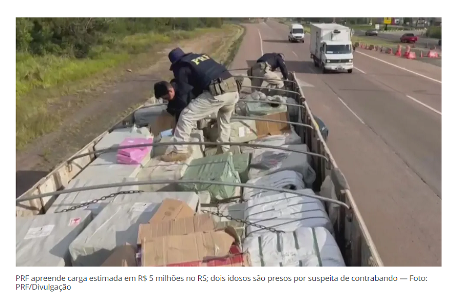 A prisão ocorreu na sexta-feira (19) pela Polícia Rodoviária Federal (PRF). Eles estavam a caminho de Caxias do Sul e a carga contrabandeada está avaliada em cerca de R$ 5 milhões.