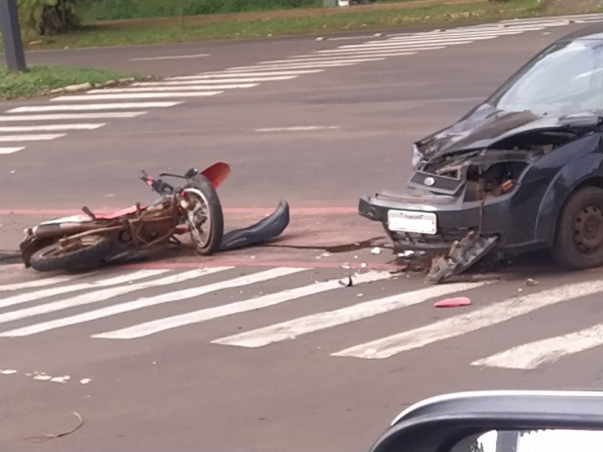 Na manhã deste domingo, 28, por volta de 10h55, ocorreu um acidente de trânsito do tipo colisão envolvendo um veículo Ford Fiesta e uma motocicleta, no semáforo de acesso ao Bairro Central em Santa Rosa.