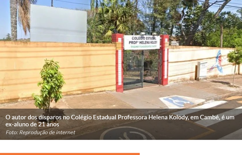 Uma adolescente de 16 anos, estudante da Escola Helena Kolody foi morta por disparo de arma de fogo por um marginal de 21 anos. Um menino de 10 anos ficou gravemente ferido.